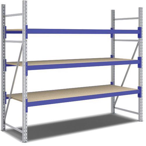 Rayonnage mi-lourd, Hauteur: 2000 mm, Nb de niveaux: 3, Type de tablette: Pleine, Largeur: 2200 mm