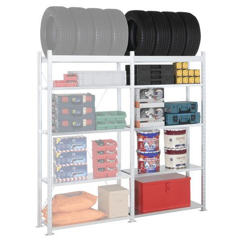 Rayonnage acier polyvalent pour le stockage d'outillage et de pneus.