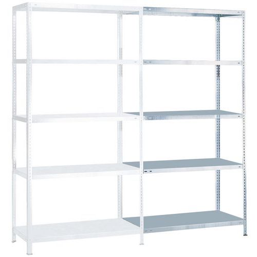 Rayonnage plein tôlé Quick-Fix Plus, Charge maxi par tablette: 150 kg, Hauteur: 2000 mm, Nb de tablettes: 5 Rayonnage plein tôlé Quick-Fix Plus, Charge maxi par tablette: 150 kg, Hauteur: 2000 mm, Nb de tablettes: 5