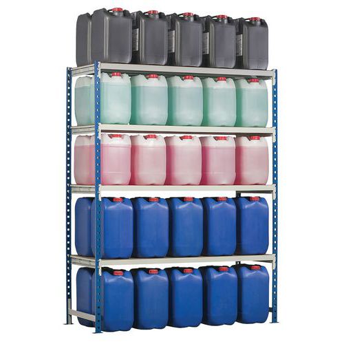 Livré à plat, montage facile. Important, pour plus de sécurité, il est conseillé d'ancrer le rayonnage au sol. Livré avec 3 étagères à claire voie : étagère supplémentaire à commander en option.