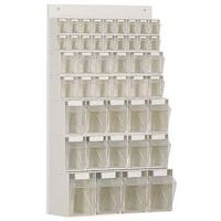 Bacs inclinables : 2 x 9 bacs et 2 x 6 bacs. Dimension des bacs rangée de 9 : 66X51X77 mm Dimension des bacs rangée de 6 : 100x75x113 mm Produit livré avec étiquettes.