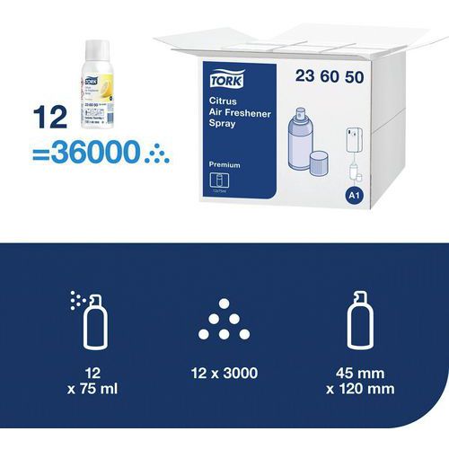 Recharge pour désodorisant automatique Tork, Conditionnement: Aérosol, Contenance: 75 mL, Parfums: Agrumes