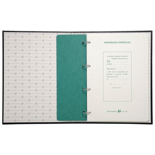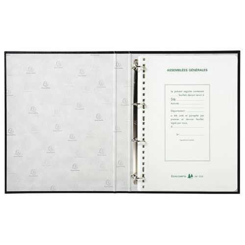 | Intitulé du produit | Registre 32x25cm 4 anneaux avec recharge Assemblées Générales, Produit recyclable: Oui - 100 % |