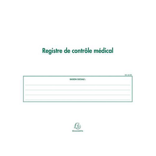 | Intitulé du produit | Registre de Contrôle médical, Modèle: Registre de Contrôle médical, Largeur: 240 mm, Hauteur: 320 mm |