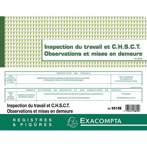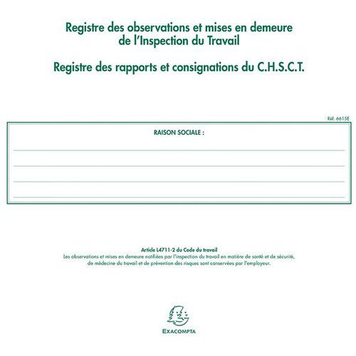 | Intitulé du produit | Registre de l'Inspection du travail et du CHSCT, Modèle: Registre de l'Inspection du travail et du C.H.S.C.T. |