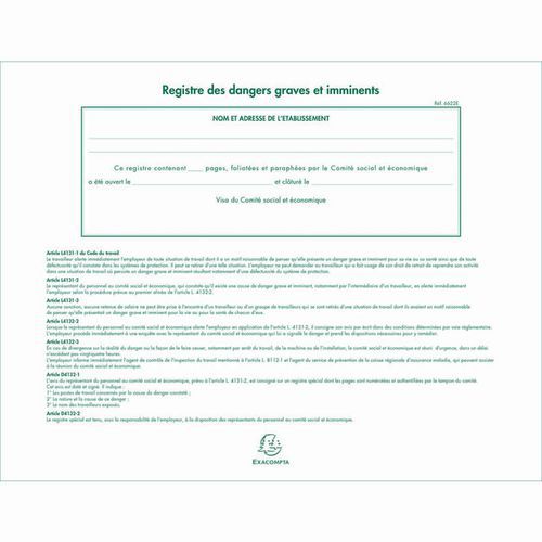 | Intitulé du produit | Régistre pour dangers 24x32 cm, Modèle: Registre et piqures, Largeur: 245 mm, Hauteur: 0.2 cm |