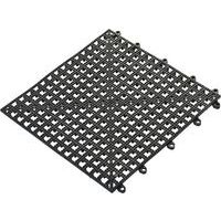 Revêtement emboîtable antidérapant pour zones humides. Écoulement efficace des liquides grâce à la hauteur importante du produit et aux larges perforations. Une solution économique mais ultra résistante. Facile à installer soi-même grâce aux connecteurs qui dissimulent les jonctions. Idéal pour un usage industriel, en particulier dans les zones exposées aux déversements de liquides. Bords inclinés, disponibles en noir ou jaune, pour éviter les chutes. Propriétés anti-fatigue d’entrée de gamme. Tests antichute selon la norme DIN 51130.