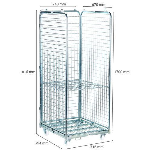 | Intitulé du produit | Roll conteneur acier 3 côtés et 1 étagère, Force: 400 kg, Hauteur hors tout: 1815 mm |