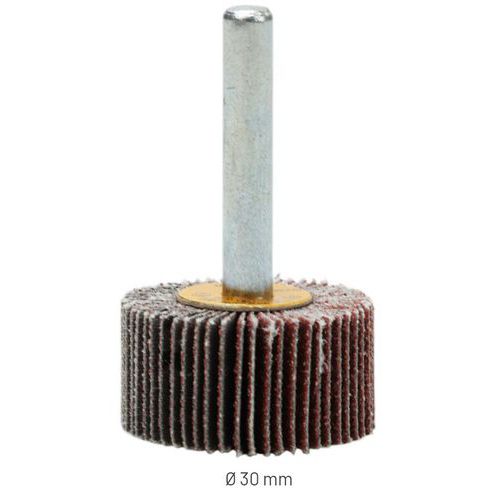 Roue à lamelles Ø 30 mm, Diamètre Ø: 30 mm, Largeur: 15 mm, Grain: 80, Tige Ø: 6 mm, Usage: Finition Roue à lamelles Ø 30 mm, Diamètre Ø: 30 mm, Largeur: 15 mm, Grain: 80, Tige Ø: 6 mm, Usage: Finition