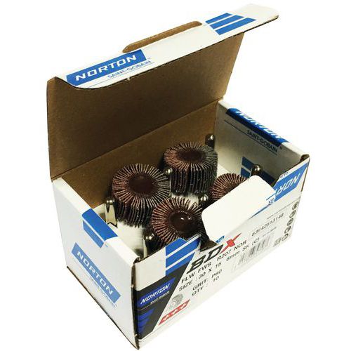 - Roue à lamelles sur tige BDX conçues pour garantir une finition constante et une rapidité de coupe régulière.