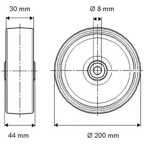 Roue polyuréthane Maxtech Capacité 60 à 100 kg, Charge maxi: 100 kg, Ø: 200 mm, Roue/roulette: Roue