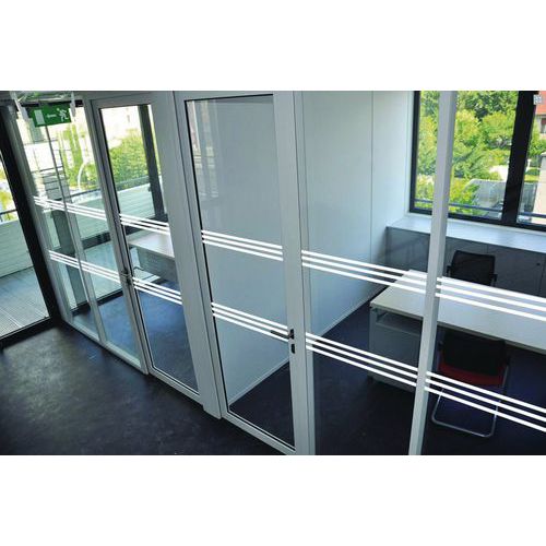 | Intitulé du produit | Rouleau de bandes de signalisation pour vitre motif 3 bandes, Matériau: PVC, Largeur: 50 mm |