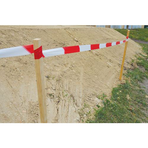 Qualités standard ou non-étirable. Visible à très longue distance. Qualité supérieure. Excellente résistance à la tension. Rouge et blanc alernés en diagonale. Largeur : 50 mm, longueur : 100 m