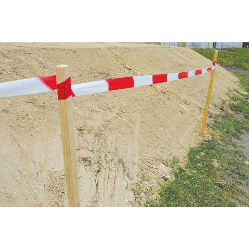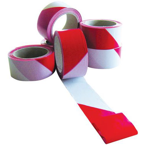 Qualités standard ou non-étirable. Visible à très longue distance. Qualité supérieure. Excellente résistance à la tension. Rouge et blanc alernés en diagonale. Largeur : 50 mm, longueur : 100 m