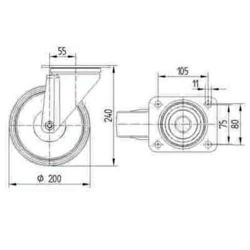 Roulette aluminium pivotante, Charge maxi: 350 kg, Ø: 200 mm, Roue/roulette: Roulette