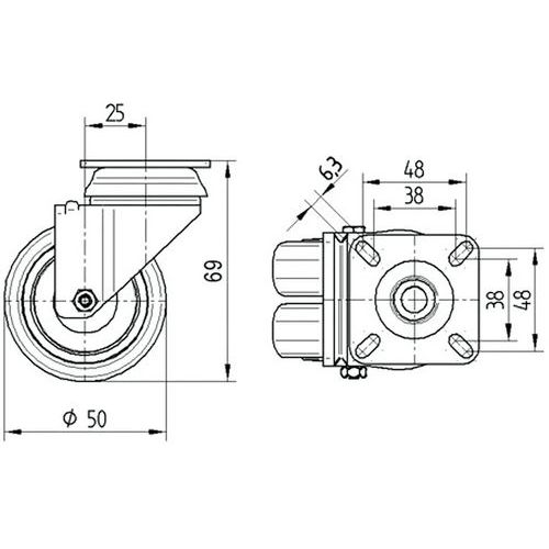 Roulette jumelée pivotante Capacité 70 kg, Charge maxi: 70 kg, Ø: 50 mm, Roue/roulette: Roulette