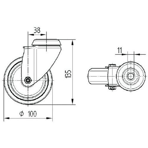 | Intitulé du produit | Roulette pivotante double frein amortisseur trou de fixation, Charge maxi: 60 kg, Ø: 100 mm |