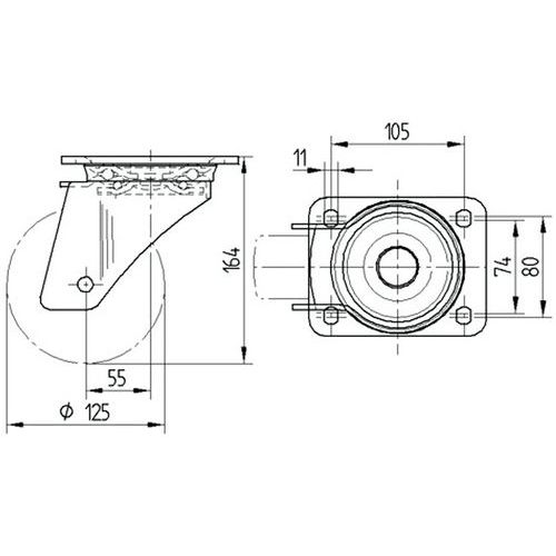 Roulette pivotante Zeta fixation automatique 180°, Charge maxi: 500 kg, Ø: 125 mm, Roue/roulette: Roulette