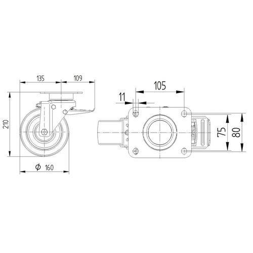 Roulette polyamide pivotante, Charge maxi: 600 kg, Ø: 160 mm, Roue/roulette: Roulette