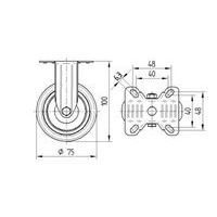 Roulette polypropylène fixe, Charge maxi: 150 kg, Ø: 75 mm, Roue/roulette: Roulette