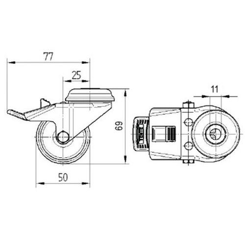 Roulette polypropylène pivotante, Charge maxi: 70 kg, Ø: 50 mm, Roue/roulette: Roulette