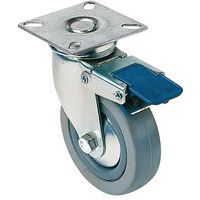 - Roulette d'appareil pivotante avec platine à visser et blocage stop fix en matière synthétique.