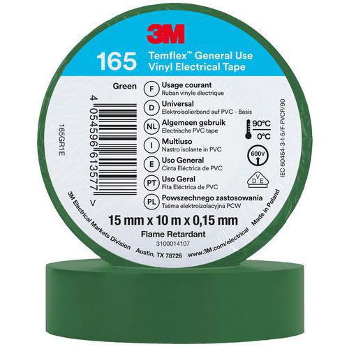 Ruban d'isolation électrique Temflex 165, Largeur: 15 mm, Longueur: 10 m, Coloris: Vert