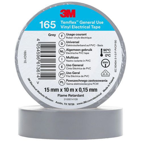 Le ruban électrique vinyle 3M™ Temflex™ 165 est un ruban isolant en PVC de qualité professionnelle, de...