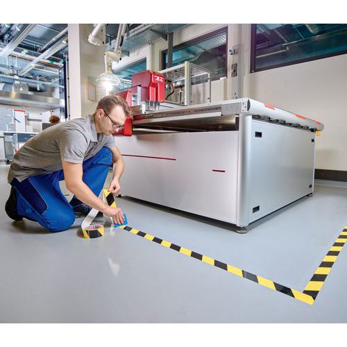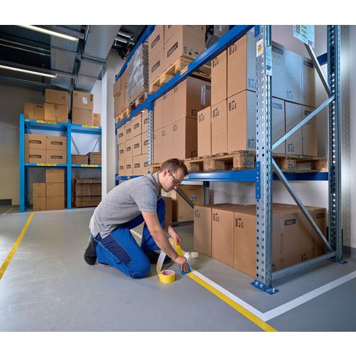 - Marquage permanent et durable pour les zones à fort trafic et à usage intensif, par exemple les usines, les entrepôts, les bureaux ou les hôpitaux.