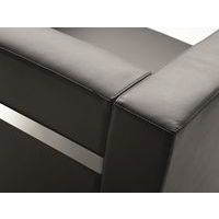 Canapé 2 places Lisoa avec revêtement enduit PVC et piétement hêtre massif laqué noir qui allient confort et élégance Structure panneaux de particules, épaisseur 15 mm et suspension avec sangles élastiques entrecroisées agrafées Assise : mousse polyuréthane 30 kg/m3, épaisseur 80 mm, recouverte de ouate polyester 150 g/m2 Dossier : mousse polyuréthane 23 kg/m3, épaisseur 30 mm, recouverte de ouate polyester 150 g/m2 Accoudoirs : mousse polyuréthane 30 kg/m3, épaisseur 30 mm, recouverte de ouate polyester 150 g/m2 Piètement en hêtre massif laqué noir Revêtement enduit : 79% PVC, 21% PES, 520 g/m2 classé non feu EN 1021-1 et 2 (cigarette et flamme)