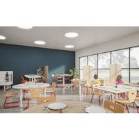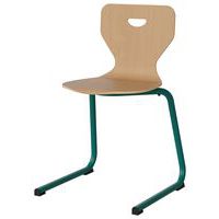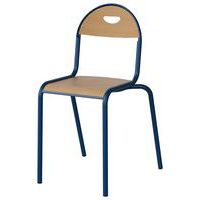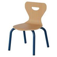Coque hêtre multiplis épaisseur 10 mm. Dossier hauteur 40 cm. Piètement Ø 25 mm laqué époxy. Chaise empilable par 10. Livrée montée.