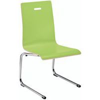 Patins en nylon, antidérapants, anti taches. Poignée de préhensions découpée dans la coque. Tranche de la coque en coloris bois naturel. Piétement en luge inversé pourfaciliter le rangement.