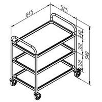 Chariot 3 plateaux, idéal pour la prise des pièces dans les allées étroites en boutique ou entrepôt. Le montage à deux roues centrales sous le chariot le rend facile à tourner même ayant une charge lourde. Hauteur utile mesurée entre le plateau inférieur et le plateau médian : 395 mm. Hauteur utile mesurée entre le plateau supérieur et le plateau médian : 340 mm.