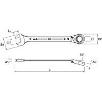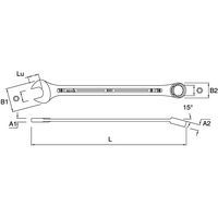 Clé mixte. angle de reprise de 30 degrés. diamètre extérieur de la tête œil réduit pour un travail en zones encombrées. inclinaison de 15 degrés entre tête et corps pour utilisation en milieux étroits. corps ergonomique non tranchant pour bonne prise en main.