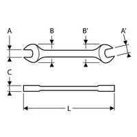 Clé à fourche. finesse de la fourche pour une accessibilité optimale. grande précision et résistance. 15 degrés d'inclinaision entre le corps et la tête. légère.