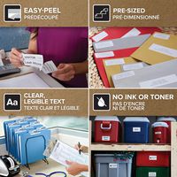 Étiquette d'adresse postale autocollante LabelWriter 36 x 89 mm. DYMO LW grandes étiquettes authentiques d'adresse autocollantes. 24 rouleaux de 130 étiquettes faciles à décoller (3 120 étiquettes) pour les étiqueteuses LabelWriter. Les grandes étiquettes d'adresse authentiques DYMO vous permettent d'expédier vos lettres et colis en toute simplicité. L'impression thermique directe évite d'utiliser de l'encre ou du toner souvent à l'origine de taches et de coûts supplémentaires. Ces étiquettes faciles à décoller s'appliquent avec rapidité et précision. DYMO LW grandes étiquettes authentiques d'adresse autocollantes 36 mm x 89 mm 24 rouleaux de 130 étiquettes faciles à décoller (3 120 étiquettes) pour les étiqueteuses LabelWriter. Leur présentation en rouleau vous permet d'imprimer rapidement une seule étiquette LW ou des centaines et d'éviter le gaspillage. Compatible avec les étiqueteuses de modèles DYMO LabelWriter 450/550 et 4XL/5XL.