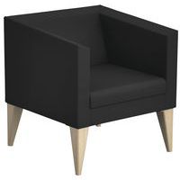 Structure en panneau de particules, panneaux multiplis et traverses en pin massif. Suspension assise par ressorts zigzag recouverts d'une toile aiguilletée. Revêtements M1 non feu 100% Trevira CS. Mousse polyuréthane densité 30 kg/m³ et nappage de fibres polyester 170 g/m². Coussin dossier : fibre de polyester. Pieds platine métal et bois massif noir