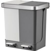 Poubelle en matière synthétique composée de deux bacs intérieurs, accessibles séparément l'un de l'autre à l'aide des deux pédales. Equipée d'un couvercle à fermeture silencieuse, avec un cadre métallique tout autour qui maintient les sacs poubelles hors de vue. Les poubelles intérieures de couleur visible facilitent le tri des déchets, sont facilement amovibles et garantissent un nettoyage rapide de la poubelle.