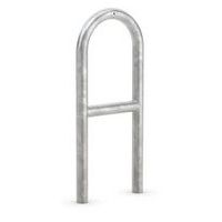 Support vélos Lisbonne en acier, tube 80 x 40 mm. Faible encombrement. Fixation simultanée du cadre et de la roue. Finition : galvanisé ou peint sur galva. Fixation par scellement direct Livré monté