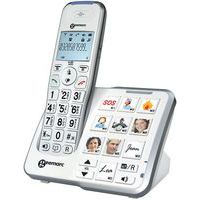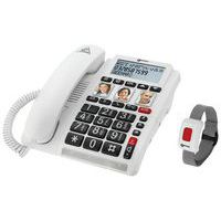 Téléphone filaire avec combiné sans fil, répondeur intégré et touches larges avec photos