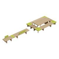Pack composé de : 4 jonctions horizontales 90°, 1 jonction horizontale 180°, 3 bancs 233,8 cm, 3 bancs 115,4 cm, 2 tables 233,8 cm, 1 dossier peint 1 m, 1 dossier peint 0,50 m Résiste aux conditions climatiques Salubrité de la conception Bois très robuste Peinture haute performance Mobilier composé de modules aux fonctions variées, combinables dans un grand nombre de configurations. Pin du nord non traité. Visserie inox. Eléments pré-montés. Fixation sur platine galva (2 par pied).