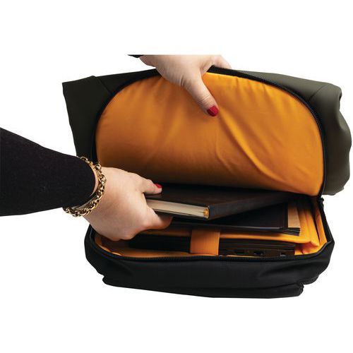 Avec un look résolument moderne et urbain, le nouveau sac à dos Exactive possède 2 compartiments : une grande poche avec fermeture aimantée à l'avant et un compartement ordinateur avec fermeture éclair à l'arrière.