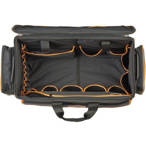 | Intitulé du produit | Sac à outils textile 73L sur roulettes poignée télescopique, Charge maxi: 28 kg, Hauteur hors tout: 300 mm |