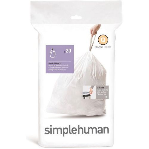 | Intitulé du produit | Sac de poubelle 50-65 L (Q)_Simplehuman, Capacité: 65 L, Épaisseur: 30 µm, Hauteur: 83 cm |