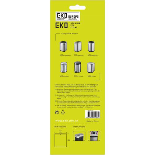 - Conçus pour les poubelles EKO et compatibles avec des modèles similaires, ces sacs-poubelle offrent une résistance optimale contre les déchirures.