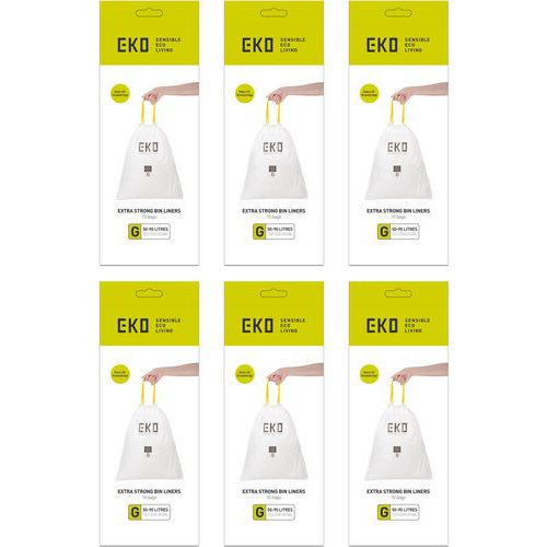 | Intitulé du produit | Sac-poubelle, Capacité: 90 L, Longueur: 710 mm, Coloris: Blanc, Largeur: 890 mm |