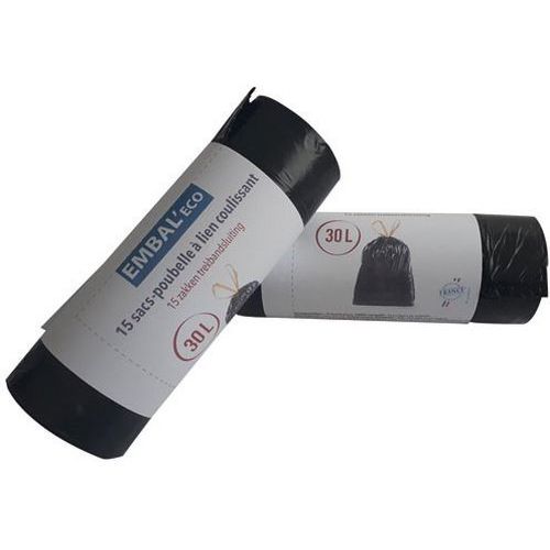 Sac poubelle Embal'eco lien coulissant, Capacité: 30 L, Type de déchet tri sélectif: Déchet ménager
