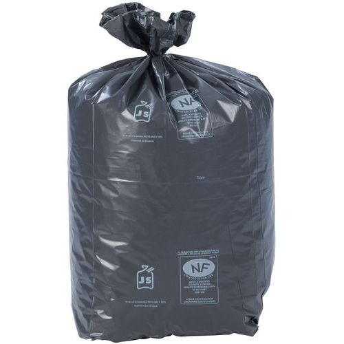 | Intitulé du produit | Sac-poubelle noir, Capacité: 60 L, Épaisseur: 50 µm, Hauteur: 80 cm, Type de déchet tri sélectif: Gravats |