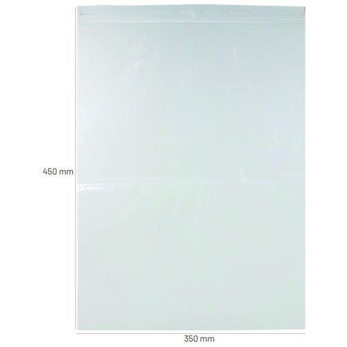 Sachets zip, Épaisseur: 50 µm, Matériau: Polyéthylène, Hauteur: 450 mm, Largeur: 350 mm, Coloris: Transparent Sachets zip, Épaisseur: 50 µm, Matériau: Polyéthylène, Hauteur: 450 mm, Largeur: 350 mm, Coloris: Transparent