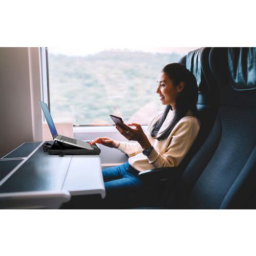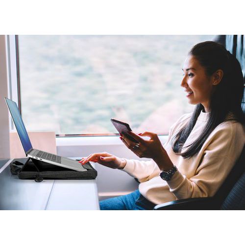 - Panneau extérieur pliable offrant un support intégré pour ordinateur 15,6/16’’.